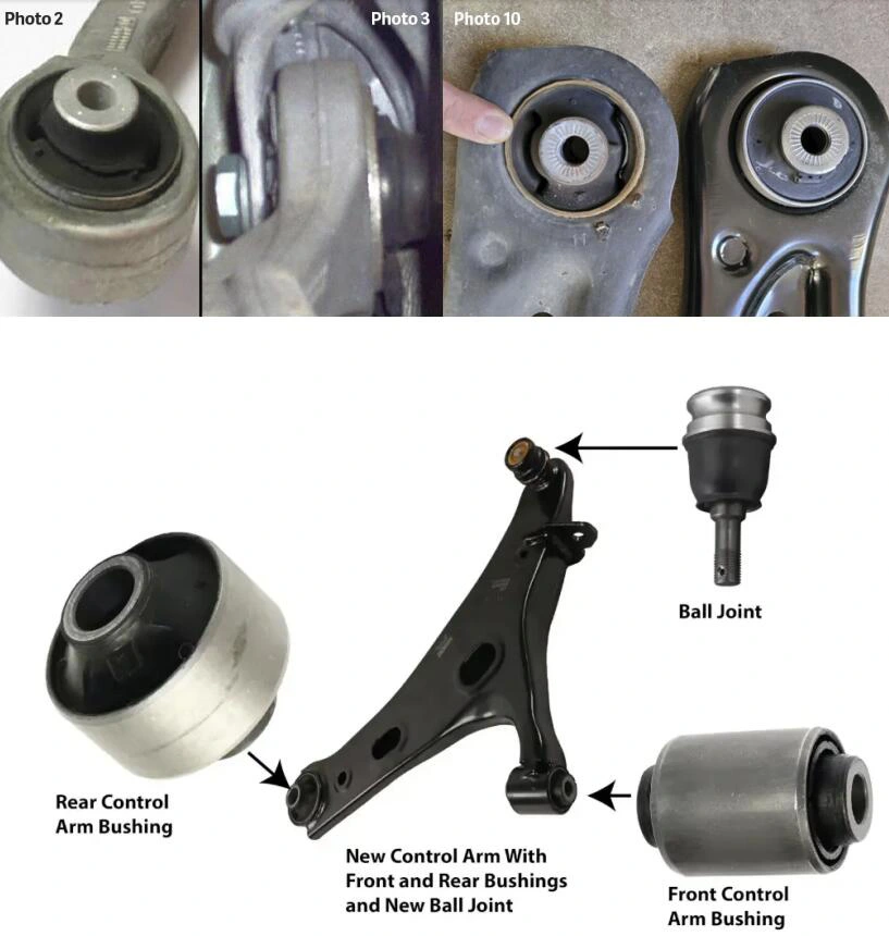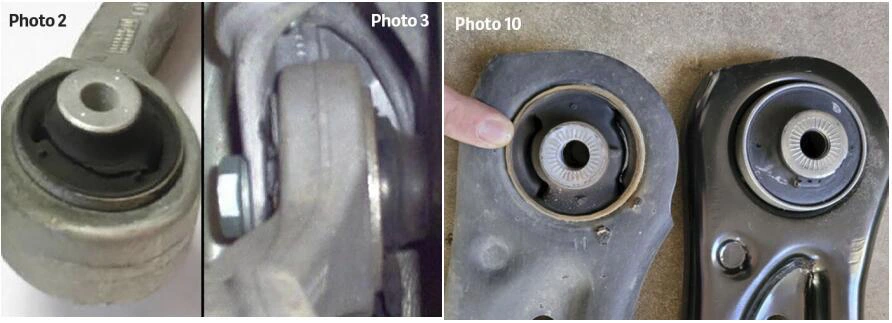 (తాజాగా, చెక్కుచెదరకుండా ఉన్న బుషింగ్లకు వ్యతిరేకంగా ధరించిన మరియు దెబ్బతిన్న వాటికి సంబంధించిన పోలికలు.)