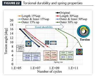 పరిశోధన ముగింపులు: బయటి వ్యాసం మాత్రమే పెరిగినప్పుడు, రేడియల్ లోడ్లకు వ్యతిరేకంగా మన్నిక తగ్గుతుంది, టోర్షనల్ మన్నిక మెరుగుపడుతుంది మరియు వసంత పనితీరు మృదువుగా ఉంటుంది. లోపలి మరియు బయటి వ్యాసాలు రెండూ పెరిగినప్పుడు, రేడియల్ లోడ్లు మరియు టోర్షనల్ లోడ్ల కింద మన్నిక రెండూ మెరుగుపడతాయి, అయితే వసంత పనితీరు మృదువుగా ఉంటుంది. అక్షసంబంధ పొడవు పెరిగినప్పుడు, రేడియల్ లోడ్లు మరియు టోర్షనల్ లోడ్ల కింద మన్నిక మెరుగుపడుతుంది మరియు వసంత పనితీరు గట్టిపడుతుంది.
