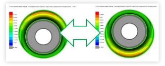 రేడియల్ లోడ్ కింద నిర్దిష్ట సస్పెన్షన్ బుషింగ్ యొక్క పరిమిత మూలకం నమూనా మరియు గణన ఫలితాల ఆకృతి ప్లాట్ను క్రింది బొమ్మ చూపుతుంది.
